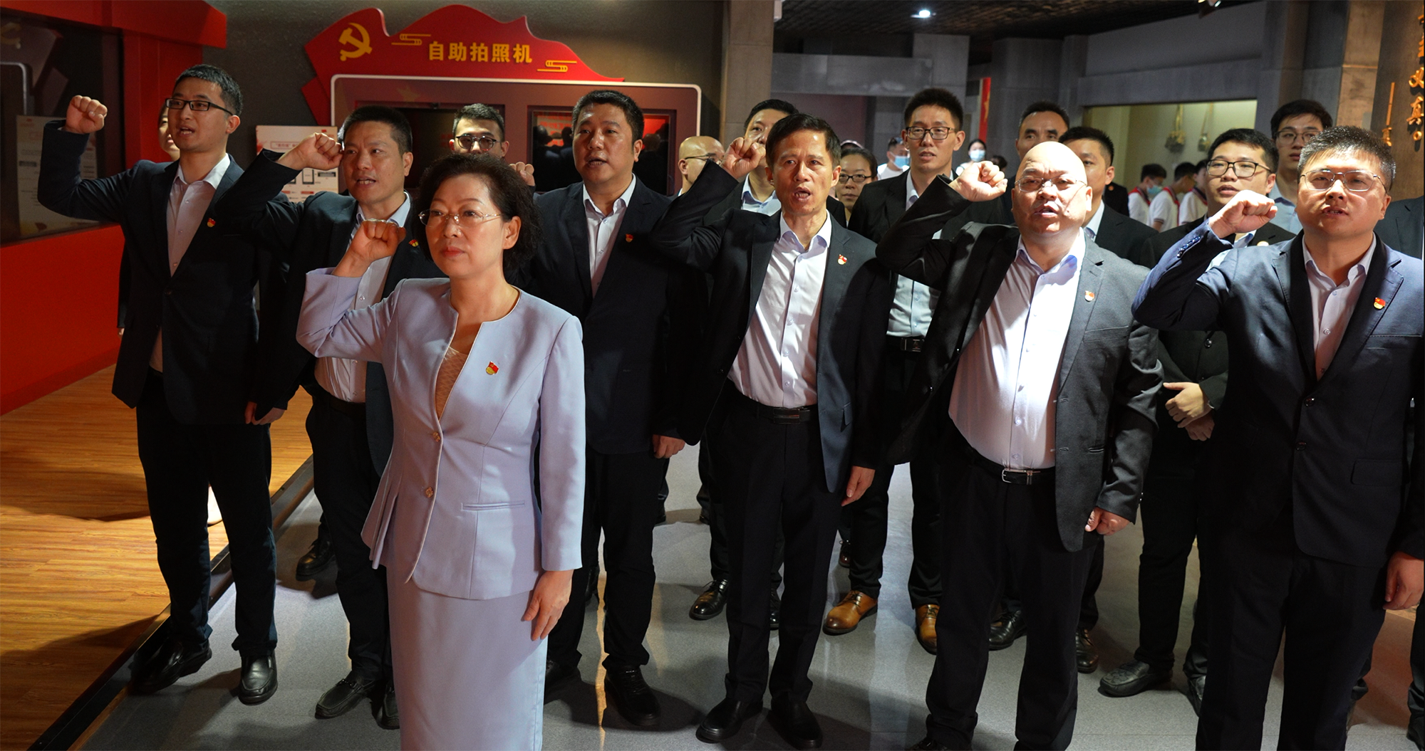参观结束后,刘景萍董事长作为集团党组织负责人,带领营销管理团队全体党员在宣誓墙面前集体宣誓,重温入党誓词。